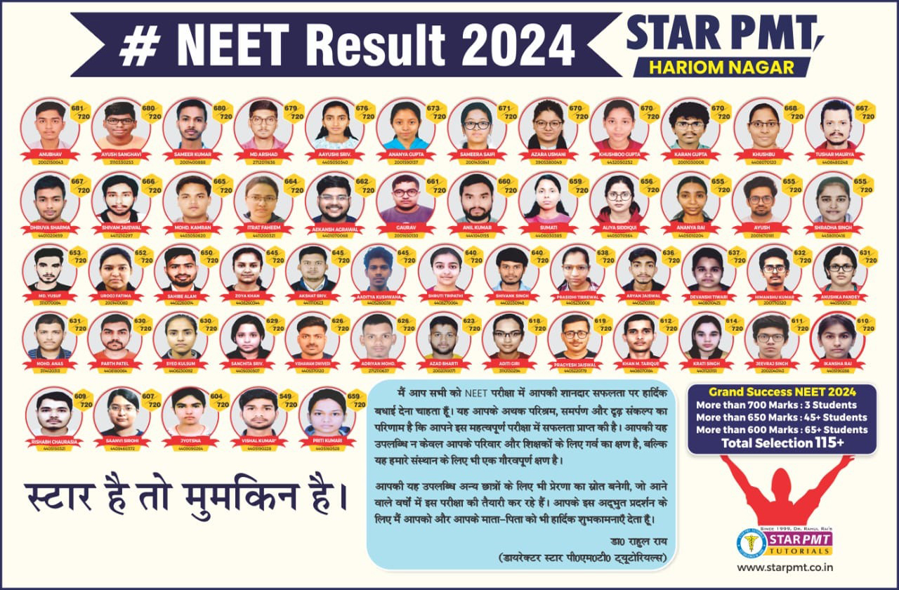 Star Pmt Tutorials offers excellent quality courses for competitive exams. They provide multiple facilities and personal attention to each student.